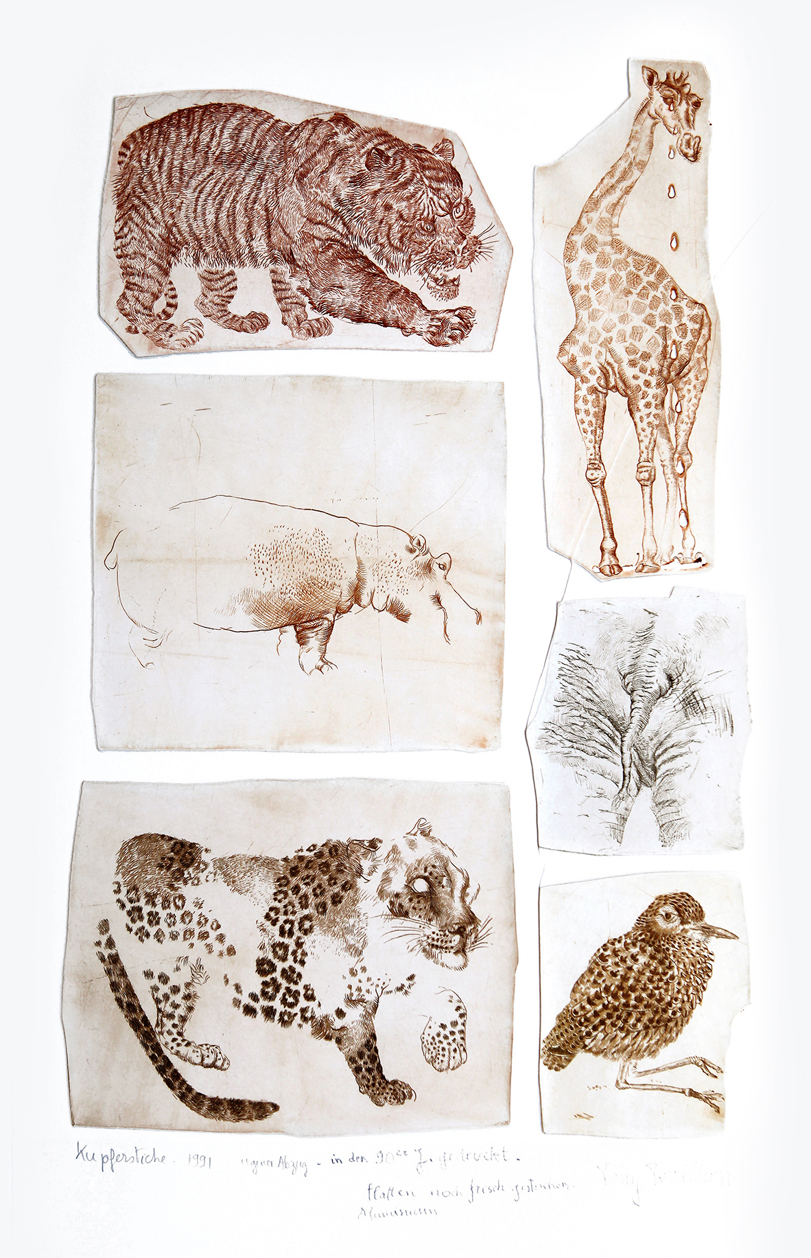 13 Selbstportaits (Kupferstiche und Prägungen) mit technischer Erklärung
