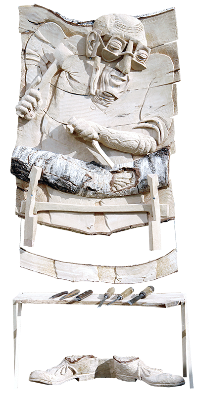 Gesichter: Pflaumenbaumholz, Haare: Buchsbaumholz
